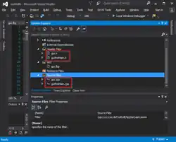 O Visual Studio não inclui nenhum suporte de controle de origem integrado, mas define duas maneiras alternativas para os sistemas de controle de origem se integrarem ao IDE.[9] Um VSPackage de controle de origem pode fornecer sua própria interface de usuário personalizada. Em contraste, um plug-in de controle de origem usando o MSSCCI (Microsoft Source Code Control Interface) fornece um conjunto de funções que são usadas para implementar várias funcionalidades de controle de origem, com uma interface de usuário padrão do Visual Studio. O MSSCCI foi usado pela primeira vez para integrar o Visual SourceSafe com o Visual Studio 6.0, mas depois foi aberto por meio do Visual Studio SDK. O Visual Studio .NET 2002 usava o MSSCCI 1.1 e o Visual Studio .NET 2003 usava o MSSCCI 1.2. O Visual Studio 2005, 2008 e 2010 usam o MSSCCI versão 1.3, que adiciona suporte para renomear e excluir propagação, bem como abertura assíncrona.[10][11]