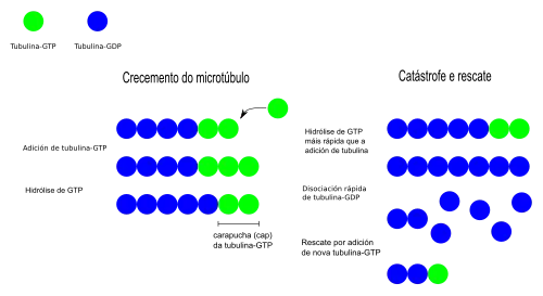 Estas características explicam que exista uma inestabilidade dinâmica nos microtúbulos, que consiste em que, numa mesma célula, alguns microtúbulos estão despolimerizando-se (o que se chama catástrofe) e outros alongando-se (o que se chama resgate).
