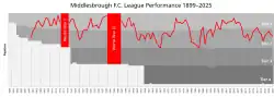 - ↑ «League history». Middlesbrough Mad. Consultado em 14 de fevereiro de 2014. Cópia arquivada em 2 de abril de 2014
