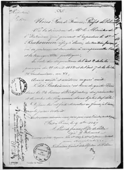 Mandado de expulsão emitido pela prefeitura de polícia de Paris a Mikhail Bakunin em 1847