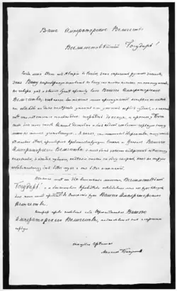 Primeira página das confissões de Bakunin ao czar Nicolau I