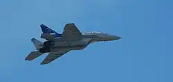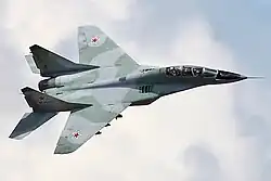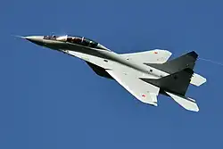 MiG-29M2/MiG-29MRCA: versão de dois lugares do MiG-29M. Características idênticas ao MiG-29M, com um alcance ligeiramente reduzido de 1.800 km (1.100 mi).[69] O MiG RAC se apresentou em vários shows aéreos, incluindo a Quinta Exposição Internacional de Aviação e Aeroespacial da China (CIAAE 2004),[70] Aero India 2005[71][72] e MAKS 2005.[73]