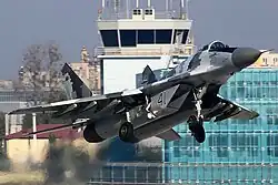 MiG-29BM: o MiG-29BM é uma atualização realizada pela fábrica de reparo de aeronaves ARZ-558 em Baranovichi, Bielorrússia. É uma variante de ataque do MiG-29 e o equivalente bielorrusso ao MiG-29SMT russo. Inclui melhorias em armas, radar, além de adicionar capacidade de reabastecimento ar-ar não retrátil. Eles entraram em serviço em 2003 e estima-se que dez ou mais foram modernizados para o padrão BM.[57] A Força Aérea de Bangladesh atualizou seus MiG-29B semelhantes ao padrão BM.[58]