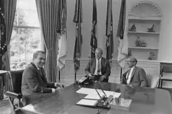 Friedman trabalhou como assessor não oficial de Ronald Reagan durante sua campanha presidencial de 1980 e depois trabalhou na equipe econômica do Presidente pelo resto do governo Reagan. Ebenstein afirmou que Friedman foi “o ‘guru’ da administração Reagan”.[15] Em 1988, ele recebeu a Medalha Nacional de Ciências e Reagan o homenageou com a Medalha Presidencial da Liberdade.[69]