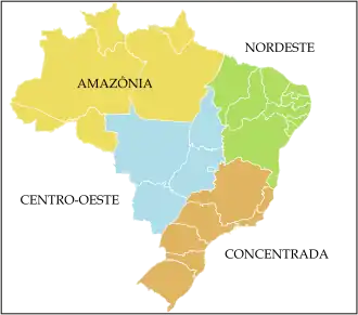 - ↑ «Diferentes divisões regionais do Brasil». UOL Educação. Consultado em 24 de fevereiro de 2018