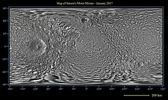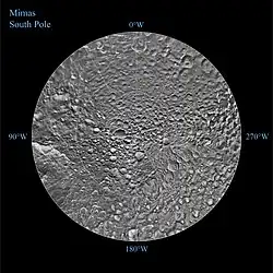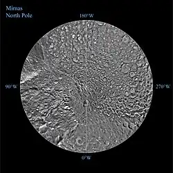 - ↑ «Bizarre Temperatures on Mimas». NASA. 29 de março de 2010. Consultado em 2 de abril de 2010