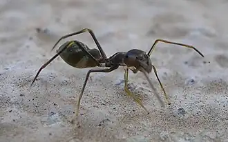 Um dos modelos mais imitados por aranhas e outros artrópodes são as formigas, isso porque as formigas são evitadas pela grande maioria dos grupos animais por apresentarem ferrão, fortes mandíbulas, exoesqueleto duro, substâncias irritantes como o ácido fórmico e um sistema de defesa espetacular já que vivem em colônia. As aranhas que imitam formigas acabam apresentando um corpo que aparenta ser dividido em três segmentos, suas pernas se tornam longas e finas e suas quelíceras se assemelham a mandíbulas como as da formiga. Os olhos e o ferrão são imitados pela cutícula e fiandeira.[8].