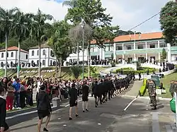 Praça Tiradentes, em Ouro Preto, com destaque à antiga Casa de Câmara e Cadeia, atual Museu da Inconfidência.