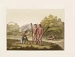 Pataxós no Rio Pardo. Gravura da viagem de Maximilian zu Wied-Neuwied em 1821.