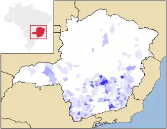 Minas Gerais é uma das 27 unidades federativas do Brasil, sendo o quarto estado com a maior área territorial e o segundo em quantidade de habitantes, com uma população estimada de 21 393 441 em 2025.[9] Localizada na Região Sudeste do país, limita-se ao sul e sudoeste com São Paulo, a oeste com Mato Grosso do Sul, a noroeste com Goiás e Distrito Federal, a norte e nordeste com a Bahia, a leste com o Espírito Santo e a sudeste com o Rio de Janeiro. Seu território é subdividido em 853 municípios, a maior quantidade dentre os estados brasileiros.