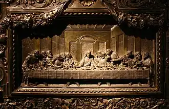 Um episódio chave na parte final do Ministério de Jesus é a Última Ceia, que inclui a instituição da Eucaristia. Em I Coríntios 11:23–26, Paulo faz uma referência ao evento[111][112][113]. Nos capítulos 14, 15, 16 e 17 do Evangelho segundo João, Jesus encerra a ceia com um longo sermão conhecido como Discurso de Adeus, que prepara os discípulos para a partida de Jesus[114][115]