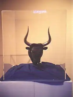O Minotauro (em grego: Μῑνώταυρος; em latim: Minotaurus; em etrusco: Θevrumineś) é um personagem da mitologia grega cuja representação mais tradicional entre os gregos antigos era uma criatura com a cabeça de um touro sobre o corpo de um homem.[1] O autor romano Ovídio descreveu-o simplesmente como "parte homem e parte touro".[nt 1] Habitava no centro de um Labirinto, uma elaborada construção[nt 2] erguida para o rei Minos de Creta, e projetada pelo arquiteto Dédalo e seu filho, Ícaro especificamente para abrigar a criatura. O sítio histórico de Cnossos, com mais de 1300 compartimentos semelhantes a labirintos,[2] já foi identificado como o local do labirinto do Minotauro, embora não existam provas que confirmem ou desmintam tal especulação. No mito, o Minotauro posteriormente morre pelas mãos do herói ateniense Teseu.