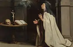 Pintura do Século XVII que apresenta um exemplo de experiência mística. Nesse quadro, produzido pelo artista flamengo Peter Paul Rubens, vê-se uma figura feminina experienciando uma conexão com algo de ordem mística, de modo que seus olhos estão dirigidos, exclusivamente, para essa aparição. É possível observar, também, que a sua cabeça está iluminada, o que reforça, simbolicamente, essa interpretação. Além disso, em cima do pedestal, pode-se visualizar um crânio humano, que na tradição cristã, especificamente na católica romana (mas também no Estoicismo, corrente filosófica criada por Zenão de Cítio), alude ao "memento mori". O memento mori é uma expressão latina que, ao ser traduzida, significa: "lembre-se da morte". Esse lema era difundido, especialmente, entre intelectuais que se debruçaram em áreas como Filosofia, Teologia e Alquimia. Isso se deve ao fato de que a morte, na compreensão dessas três ciências, era tomada como uma verdade, embora muitas vezes pautada através de uma ótica metafísica. Dessa forma, independentemente do indivíduo, ela seria o destino comum à todos os seres humanos.