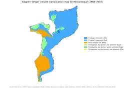 - 1 2 «Clima». Guia de Turismo de Moçambique. Consultado em 18 de junho de 2006. Arquivado do original em 1 de dezembro de 2006