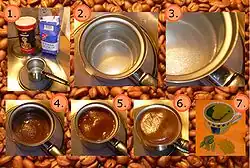 ![]() Materiais tradicionalmente utilizados no preparo de um café moca. | |