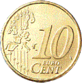 | 10 cêntimos / € 0,10 | 19,75 | 1,93 | 4,10 | Dourada | Liga metálica de cobre (ouro nórdico) | Ondulado |