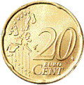 | 20 cêntimos / € 0,20 | 22,25 | 2,14 | 5,74 | Dourada | Liga Metálica de cobre (Ouro Nórdico) | Liso com sete edentações ("Flor Espanhola") |