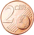 | 2 cêntimos / € 0,02 | 18,75 | 1,67 | 3,06 | Cobreada | Aço banhado a cobre | Liso com entalhe simples a meia altura |