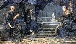 As moiras, com o fio da vida Alegoria, por Strudwick, 1885 | |