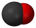 Modelo de preenchimento de espaço de uma molécula de monóxido de carbono