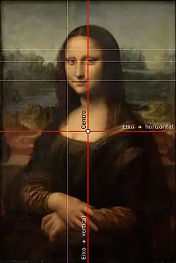 Análises geométricas mostram que a grade estrutural da pintura obedece a rígidas divisões, as quais situam os olhos da figura no eixo que parte do centro horizontal e nas subdivisões áureas ali existentes. Como consequência dessa composição, o olhar de Mona Lisa parece acompanhar quem a observa, se as pessoas estiverem até 10 graus de ângulo visual no total ou 5 graus para cada lado. Embora o efeito Mona Lisa exista, ele não foi verificado, neste retrato, para ângulos abertos.[81][75]