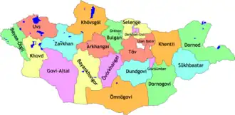 - 1 2 «Mongolia - Administrative units». GeoHive. Consultado em 15 de novembro de 2011