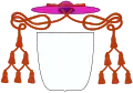 Protonotário Apostólico Numerário | Os 7 Protonotários Apostólicos Numerários usam no brasão o galero violeta com 20 borlas púrpuras. Também usam as mesmas insígnias os Juízes Auditores do Tribunal da Rota Romana, o Promotor-Geral de Justiça e o Defensor do Vínculo do Supremo Tribunal da Assinatura Apostólica e os 4 Clérigos da Câmara Apostólica. Até o título ser abolido os Prelados di Fiochetto também usavam no brasão estas insígnias. |