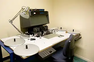 Antes do uso difundido de sistemas digitais de edição não linear, a edição inicial de todos os filmes era feita com uma cópia positiva do filme negativo, chamada workprint, cortando e colando fisicamente pedaços de filme.[15] Tiras de filmagem seriam cortadas à mão e coladas com fita adesiva e depois no tempo, cola. Os editores eram muito precisos; se fizessem um corte errado ou precisassem de uma impressão positiva, custaria dinheiro e tempo de produção para o laboratório reimprimir a gravação. Com a invenção de um splicer e enfiar a máquina com um visualizador, tal como uma máquina Moviola, ou "flatbed" tal como um K.-E.-M. ou Steenbeck, o processo de edição acelerou um pouco e os cortes ficaram mais limpos e precisos. A prática de edição do Moviola não é linear, permitindo ao editor fazer escolhas mais rapidamente, uma grande vantagem na edição de filmes episódicos para a televisão, que têm prazos muito curtos para concluir o trabalho. Todos os estúdios de cinema e empresas de produção que produziram filmes para a televisão forneceram essa ferramenta para seus editores. Máquinas de edição de mesa foram usadas para reprodução e refinamento de cortes, particularmente em longas-metragens e filmes feitos para a televisão porque eles eram menos barulhentos e mais limpos para trabalhar. Eles foram usados extensivamente para produção de documentários e dramas no Departamento de Filmes da BBC. Operado por uma equipe de dois, um editor e editor assistente, esse processo tátil exigia uma habilidade significativa, mas permitia que os editores trabalhassem com extrema eficiência.[16]