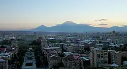 O Ararate domina o horizonte da capital da Armênia, Erevã.[9] A montanha é reverenciada pelos armênios como um símbolo de sua identidade nacional e de seu irredentismo. O Ararate é o símbolo nacional da República da Armênia desde 1991, sendo apresentado no centro de seu brasão de armas.[10] Em 1937, ele passou a figurar no brasão da República Socialista Soviética da Armênia, que caracterizava o Monte Ararat, juntamente com o martelo soviético e a foice com uma estrela vermelha atrás dele.[11] Após a dissolução da União Soviética, uma versão ligeiramente modificada do brasão de armas da República Democrática da Armênia foi adotado e se manteve em vigor desde então.[10]