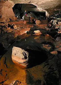 - ↑ Uma grande abertura na superfície do planalto, denominada "El Fosso", que recebe uma grande quantidade de água, constituía uma caverna cujo teto desabou. (Carreño & Blanco, 2004)
