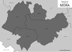 A vila de Mora é sede do Município de Mora com 443,95 km² de área e 4.155 habitantes (2023)[2], subdividido em 4 freguesias. O município é limitado a norte pelo município de Ponte de Sor, a nordeste por Avis, a leste por Sousel, a sueste por Arraiolos e a oeste por Coruche.