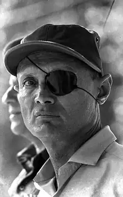 Moshe Dayan (Degania Alef, 20 de maio de 1915—Tel Aviv, 16 de outubro de 1981), foi um militar e político israelense (português brasileiro) ou israelita (português europeu). Como comandante da frente de Jerusalém na Guerra Árabe-Israelense de 1948, Chefe do Estado-Maior das Forças de Defesa de Israel (1953-1958) durante a Crise de Suez de 1956, mas principalmente como Ministro da Defesa durante a Guerra dos Seis Dias em 1967, tornou-se um símbolo da luta mundial do novo Estado de Israel.[1][2] Na década de 1930, Dayan ingressou no Haganah, a força de defesa pré-Estado judaico do Mandato Britânico da Palestina,[3] e serviu nos Esquadrões Noturnos Especiais sob Orde Wingate durante a revolta árabe na Palestina.[4] Como oficial da Palmach, perdeu um olho em uma incursão contra forças de Vichy no Líbano, durante a Segunda Guerra Mundial.[5][6] Deste ferimento veio o icônico tapa-olho pelo qual é conhecido.[7][8]