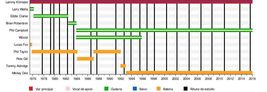 | Ex-integrantes | Lemmy Kilmister Larry Wallis Lucas Fox Phil Taylor Eddie Clarke Brian Robertson Phil Campbell Würzel Pete Gill Mikkey Dee |