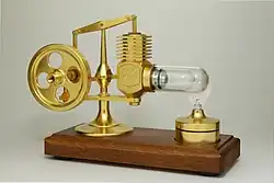 Motor Stirling é uma máquina térmica de ciclo fechado. É referido também como motor a ar quente[1] ou motor de gás quente,[2] por utilizar os gases atmosféricos como fluido de trabalho. Obtém energia a partir de uma fonte externa de calor, que pode ser qualquer combustível (combustíveis fósseis, biocombustíveis, energia geotérmica, etc.), a luz solar ou até mesmo uma xícara de chá ou o calor emitido pela palma das mãos.