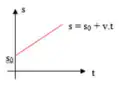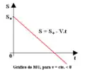 Podemos observar que o espaço é uma função do tempo s = f(t), do 1º grau em t. Uma função de 1º grau é representada graficamente por uma reta, no sistema de coordenadas cartesianas, em relação ao eixo dos tempos.