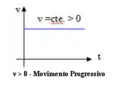 Notamos que o gráfico da função é uma reta crescente, portanto, o movimento é progressivo, ou seja, o móvel caminha na mesma direção e sentido da orientação da trajetória. Para v > 0 a função é crescente, assim o gráfico da função pode ser: