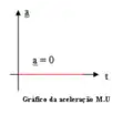 Como no movimento uniforme a aceleração é nula (a=0), o gráfico da aceleração é uma reta que coincide com o eixo dos tempos.