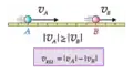Consideremos duas partículas A e B movendo-se em uma mesma trajetória e com velocidades escalares A e B, em duas situações distintas: movendo-se no mesmo sentido e em sentidos opostos. A velocidade escalar que uma das partículas possui em relação à outra (tomada como referência) é chamada de velocidade relativa (REL) e o seu módulo é calculado como relatamos a seguir.