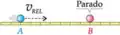 Observação: Ao estabelecermos um movimento relativo entre móveis, um deles é tomado como referência e, portanto, permanece parado em relação a si mesmo, enquanto o outro se aproxima ou se afasta dele com uma certa velocidade relativa. Observe isto no esquema abaixo.