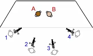 Nesse sistema, várias câmeras são dispostas no set, registrando ou transmitindo simultaneamente diferentes ângulos da mesma cena. Geralmente, as câmeras centrais enquadram um panorama geral do ambiente e as câmeras dos extremos focalizam os personagens mais ativos em determinado instante.