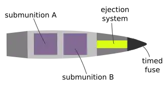 Os cartuchos de artilharia completos são ainda classificados de acordo com o tipo de projétil empregado, como alto explosivo, perfurante de armadura, antipessoal, nuclear ou químico.[4]