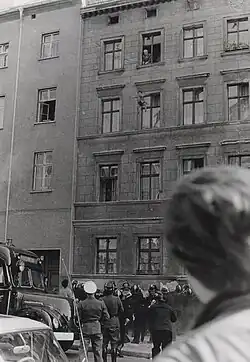 Em 22 de agosto de 1961, Ida Siekmann foi a primeira vítima do Muro de Berlim: ela morreu depois de pular de seu apartamento no terceiro andar, na Bernauer Strasse, 48.[61] A primeira pessoa a ser baleada e morta enquanto tentava cruzar para Berlim Ocidental foi Günter Litfin, um alfaiate de 24 anos de idade. Ele tentou atravessar a nado o rio Spree até Berlim Ocidental em 24 de agosto de 1961, o mesmo dia em que a polícia da Alemanha Oriental recebeu ordens de atirar para matar para impedir que alguém escapasse.[62]