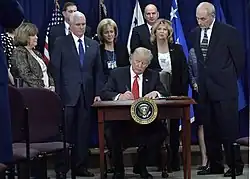 - ↑ «Trump signs $1.3 trillion spending bill into law despite being 'unhappy' about it». CNBC. 6 de setembro de 2002