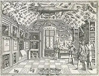 Entre os séculos XVI e XVII, com a expansão do conhecimento do mundo propiciado pelas grandes navegações, se formaram na Europa inúmeros gabinetes de curiosidades, coleções altamente heterogêneas e assistemáticas de peças das mais variadas naturezas e procedências, incluindo fósseis, esqueletos, animais empalhados, minerais, curiosidades, aberrações da natureza, miniaturas, objetos exóticos de países distantes, obras de arte, máquinas e inventos, e toda a sorte de objetos raros e maravilhosos. Tais gabinetes tiveram um papel importante na evolução da história e da filosofia natural especialmente ao longo do século XVII.[8] Na mesma época proliferaram as galerias palacianas, dedicadas à exposição de esculturas e pinturas. Mas tanto os gabinetes como as galerias ainda estavam essencialmente dentro dos círculos privados, inacessíveis à população em geral.[7] Movidas por interesses científicos foram fundadas inúmeras sociedades e instituições, como os jardins botânicos de Pisa (1543) e o de Pádua (1545), a Real Sociedade de Londres (1660) e a Academia de Ciências de Paris (1666), que reuniam suas próprias coleções.[6] No Brasil a primeira coleção de que se tem notícia foi formada pelo colonizador neerlandês conde Maurício de Nassau, cuja corte se notabilizou pelo brilho científico e cultural, instalando-a em torno de 1640 no Palácio de Friburgo, em Recife, semelhante em caráter aos gabinetes de curiosidades.[9]