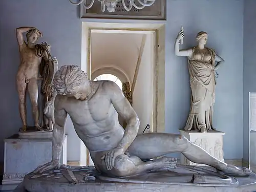 Sala do Gladiador, com a célebre representação do Gálata moribundo oriunda de Pérgamo; o Sátiro em repouso, cópia de Praxíteles; uma Amazona ferida cópia de Fídias, e o Antínoo Capitolino, além de outras peças.