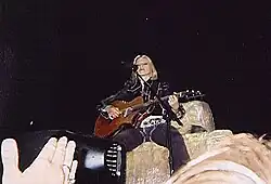 Maior promoção ao álbum foi feita com a turnê Drowned World Tour. Iniciada em junho de 2001, que percorreu os Estados Unidos e a Europa e divulgou tanto Music quanto Ray of Light, marcando a primeira digressão de Madonna em oito anos, desde a The Girlie Show World Tour (1993).[155] Originalmente, estava prevista para começar em setembro de 1999 e promoveria apenas o último álbum,[3][156] mas vários acontecimentos causaram o seu adiamento, incluindo o atraso das filmagens de The Best Next Thing, o casamento da cantora com Guy Ritchie e a gravidez de seu segundo filho.[3][157] Quando Madonna finalmente decidiu embarcar na excursão, o tempo era curto e ela teve que preparar o show dentro de três meses. Jamie King foi selecionado como diretor criativo e coreógrafo da digressão, com Jean-Paul Gaultier sendo escolhido como estilista.[158][159][160][161] Os concertos foram divididos em cinco segmentos, Cyber-Punk, Geisha, Cowgirl, Spanish e Ghetto, com cada um representando uma fase da carreira da artista.[162] O repertório foi predominantemente composto por faixas contidas nos trabalhos promovidos; "La isla bonita" e "Holiday" foram as únicas lançadas antes da década de 1990 a serem incluídas.[163] Várias mudanças foram adotadas para as três últimas apresentações em Los Angeles, devido aos ataques de 11 de setembro. Madonna usou um kilt com a bandeira dos Estados Unidos durante o primeiro bloco como uma demonstração de seu patriotismo; a canção "The Funny Song", com temática canibalista, foi removida do repertório; e o encerramento da segunda parte de "Mer Girl" foi alterado para remover uma encenação de tiro em um personagem. A cantora, em vez de atirar no personagem, abaixou a arma, o abraçou e eles saíram do palco juntos.[164]
