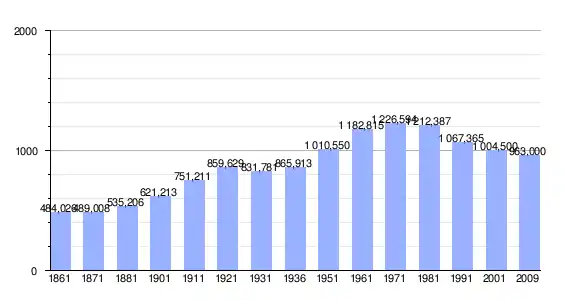 | Variação demográfica do município entre 1861 e 2011[4] |