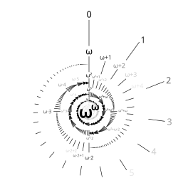 - ω é um ordinal limite porque para qualquer ordinal menor (neste exemplo, um número natural), nós podemos achar outro ordinal (número natural) maior que ele, mas ainda assim menor que ω.