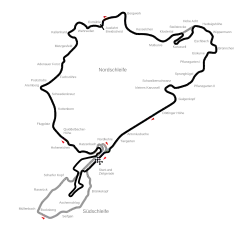 - ↑ «Nürburgring Nordschleife - Mapa HD do circuito, calendário de corridas, tempos de volta e aluguel de carros de corrida | Base de dados de circuitos 51GT3». 51gt3.com. Consultado em 22 de fevereiro de 2026
