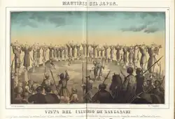 Em 1596, a embarcação espanhola San Felipe foi destruída na costa de Shikoku, e Hideyoshi soube com o capitão de que Franciscanos espanhóis estavam na vanguarda de uma invasão ibérica do Japão. Em resposta, Hideyoshi ordenou a crucificação de vinte e seis católicos em Nagasaki.[14] Os comerciantes portugueses não foram condenados ao ostracismo, e assim a cidade continuou a prosperar.[carece de fontes]